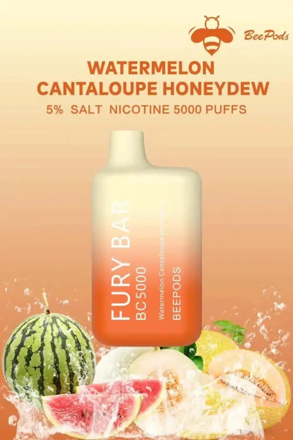 Watermelon Cantaloupe  Honeydew - Fury Bar 5000 Puffs Disposable Vape 50mg Bee Pods In Dubai, UAE